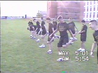 Mile run - Cadet Lowe, Fleet Foot, Cadet Cunningham (w/o shoe), Cadet Rossbach, Capt Welsh, volleyball: