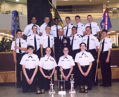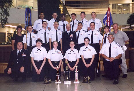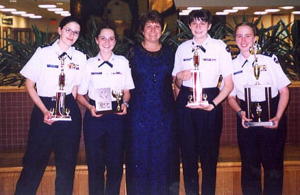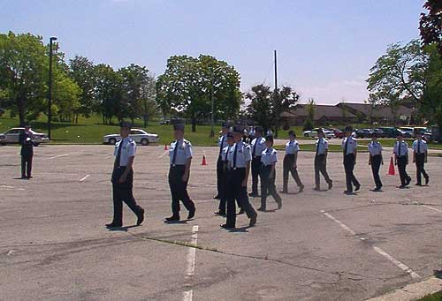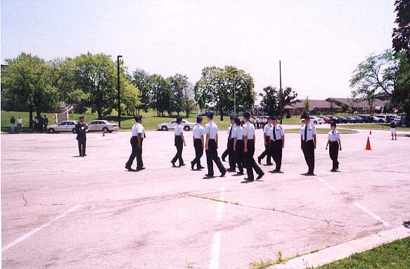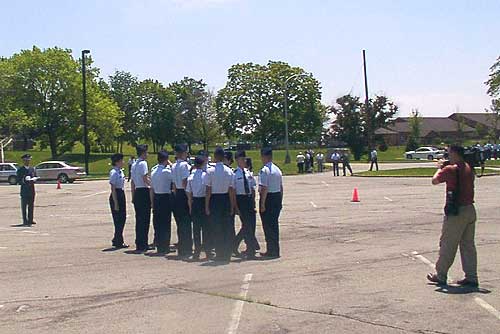 The Demon Drill team waits for the start of drill; Performing the drill card.